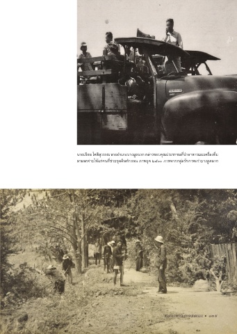 นายเยียน โพธิสุวรรณ นายอำาเภอบางมูลนาก กล่าวขอบคุณประชาชนที่นำาอาหารและเครื่องดื่ม มาแจกจ่ายให้แก่คนที่ช่วยขุดดินทำาถนน ภาพยุค ๒๕๐๐ ภาพจากกลุ่มรักภาพเก่าบางมูลนาก สมุดภาพกรมการปกครอง 135