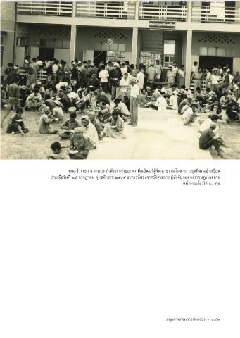 คณะข้าราชการ ราษฎร กำาลังแจกจ่ายอาหารมื้อเย็นแก่ผู้พัฒนาชาวระโนด คราวขุดดินถมข้างเขื่อน ถ่ายเมื่อวันที่ ๒๕ กรกฎาคม พุทธศักราช ๒๕๐๕ อาหารนั้นขอจากข้าราชการ ผู้บังคับกอง และราษฎรในตลาด หนึ่งรายเลี้ยงได้ ๒๐ คน สมุดภาพกรมการปกครอง 143