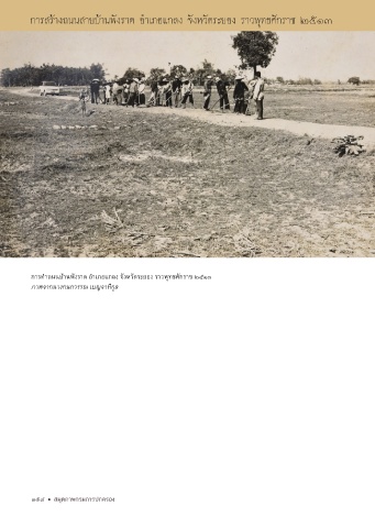การสร้างถนนสายบ้านพังราด อำาเภอแกลง จังหวัดระยอง ราวพุทธศักราช ๒๕๑๓ การทำาถนนบ้านพังราด อำาเภอแกลง จังหวัดระยอง ราวพุทธศักราช ๒๕๑๓ ภาพจากนางกนกวรรณ เบญจาทิกุล 154 สมุดภาพกรมการปกครอง
