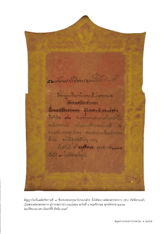 สัญญาบัตรในสมัยรัชกาลที่ ๗ ซึ่งทรงพระกรุณาโปรดเกล้าฯ ตั้งให้หลวงสมัครสรรพาการ (ช่วง ทัศนียานนท์) เป็นพระสมัครสรรพการ ผู้ว่าราชการอำาเภอแม่สอด ลงวันที่ ๘ พฤศจิกายน พุทธศักราช ๒๔๗๔ สมบัติของนางสาวจันทร์ศิริ ทัศนียานนท์ สมุดภาพกรมการปกครอง 277