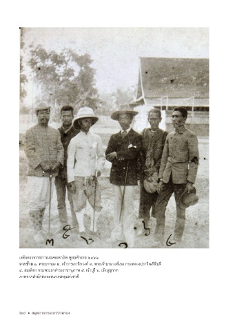 เสด็จตรวจราชการมณฑลพายัพ พุทธศักราช ๒๔๔๑ จากซ้าย ๑. พระยาทอง ๒. เจ้าราชภาติกวงค์ ๓. พระเจ้าบรมวงศ์เธอ กรมหลวงปราจิณกิติบดี ๔. สมเด็จฯ กรมพระยาดำารงราชานุภาพ ๕. เจ้าบุรี ๖. เจ้าบุญวาท ภาพจากส�านักหอจดหมายเหตุแห่งชาติ 28 สมุดภาพกรมการปกครอง