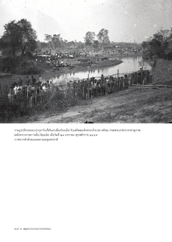 ราษฎรบริเวณขอบทุ่งกุลาร้องไห้นอกเมืองร้อยเอ็ด รับเสด็จสมเด็จพระเจ้าบรมวงศ์เธอ กรมพระยาดำารงราชานุภาพ เสด็จตรวจราชการเมืองร้อยเอ็ด เมื่อวันที่ ๒๙ มกราคม พุทธศักราช ๒๔๔๙ ภาพจากส�านักหอจดหมายเหตุแห่งชาติ 38 สมุดภาพกรมการปกครอง