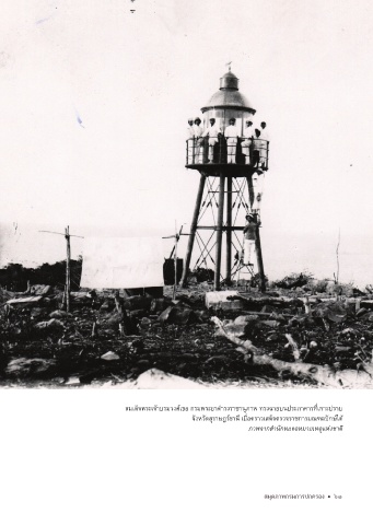 สมเด็จพระเจ้าบรมวงศ์เธอ กรมพระยาดำารงราชานุภาพ ทรงฉายบนประภาคารที่เกาะปราบ จังหวัดสุราษฎร์ธานี เมื่อคราวเสด็จตรวจราชการมณฑลปักษ์ใต้ ภาพจากส�านักหอจดหมายเหตุแห่งชาติ สมุดภาพกรมการปกครอง 61